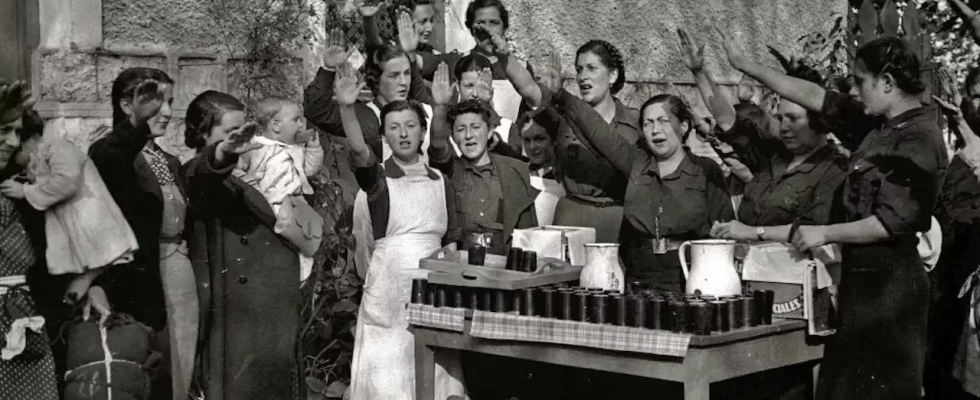 La “Sección Femenina” –rama femenina de la Falange Española de las JONS, fundada en 1934 y liderada por Pilar Primo de Rivera– imponía una estricta reeducación basada en la sumisión y el servicio al hogar. Su hermano José Antonio Primo de Rivera, fundador de Falange, definía la función de las mujeres en estos términos: