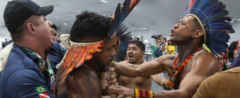 Decenas de manifestantes —entre ellos indígenas y jóvenes activistas— irrumpieron el martes en la sede de la segunda jornada de la COP30 en Belém, enfrentándose con los guardias de seguridad mientras exigían medidas urgentes contra el cambio climático y la protección de los bosques. Gritando con fuerza y portando pancartas, reclamaban acceso a la “zona azul” de la cumbre de la ONU y reivindicaban sus territorios libres de explotadores, denunciando la invasión de industrias extractivas que amenazan sus comunidades y la Amazonia.