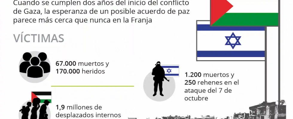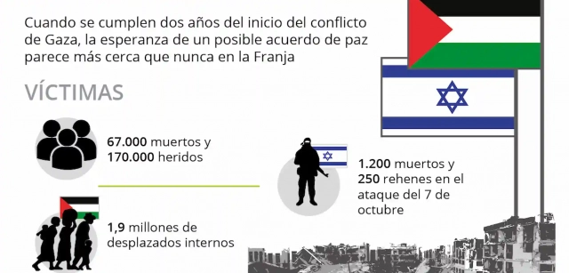 Dos años después del comienzo del conflicto en Gaza, la perspectiva de una posible tregua duradera parece más cercana que nunca. Esta esperanza de paz llega después de que, en estos 730 días, al menos 67.173 palestinos hayan sido asesinados y casi 170.000 hayan resultado heridos.