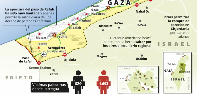 Mapa de la incursión militar de Israel en Gaza, actualizado a 2 de marzo de 2026, con las zonas de combate y avance terrestre / Imagen: EA La lenta suma de víctimas mortales no deja de aumentar ningún día. A pesar de la situación oficial de tregua, Israel lanza de manera continua ataques y bombardeos localizados sobre lo que ellos identifican como objetivos terroristas. Ejemplos recientes de este tipo de actuaciones se han dado contra la ciudad de Gaza, el enclave septentrional de Beit Lahia y la ciudad de Jan Yunis, con víctimas mortales en todos los casos.
