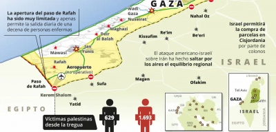 La ‘nueva normalidad’ tras la tregua no llega a la población civil, como tampoco se cumplen las principales condiciones requeridas en los primeros pasos de la tregua. La retirada del ejército israelí de la llamada Línea Amarilla es de dudoso cumplimiento y la reapertura del paso de Rafah, realizada de manera efectiva a inicios de febrero, apenas permite la salida diaria de una decena de enfermos a causa del férreo control ejercido por Israel sobre el paso de personas por dicho paso.