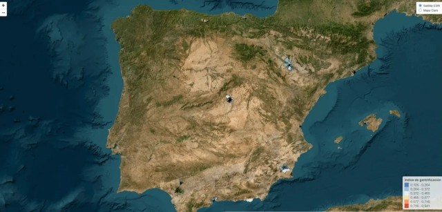 Se ha centrado en las 10 ciudades españolas más pobladas (Madrid, Barcelona, Valencia, Sevilla, Zaragoza, Málaga, Murcia, Palma de Mallorca, Bilbao y Las Palmas de Gran Canaria), y han elaborado un mapa interactivo para cada ciudad. De acuerdo a un índice que ha creado a propósito, el Índice de Gentrificación, que funciona como un termómetro y resume en un único valor —entre 0 y 1— mide la intensidad del proceso en cada ciudad. Este indicador combina tanto la velocidad del cambio registrado en la década como la intensidad socioeconómica a partir de ocho variables demográficas, socioeconómicas y del mercado de alquiler.