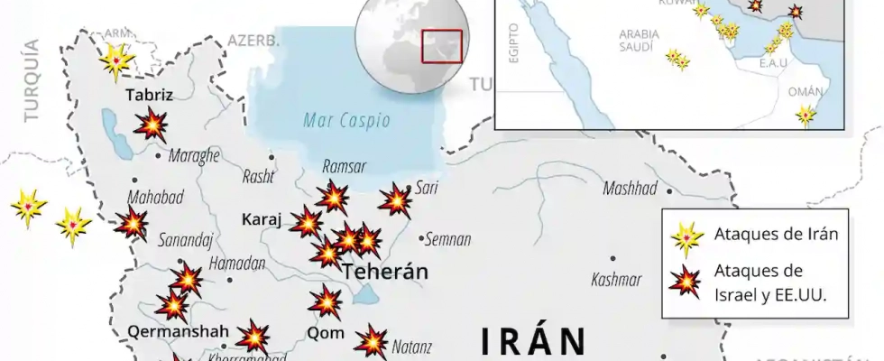 Los principales bombardeos se agrupan en torno a las importantes infraestructuras armamentísticas concentradas en los alrededores de Teherán. Pero también han sido golpeadas con dureza las construcciones de la región de Isfahán, con importantes instalaciones nucleares, y otros lugares como Tabriz, al noroeste del país, Kermanshah o zonas más próximas al golfo Pérsico como el entorno de la isla de Jarg, principal punto de salida del petróleo iraní, o las inmediaciones de Bandar Abás, que preside el paso por la zona más angosta del estrecho de Ormuz.