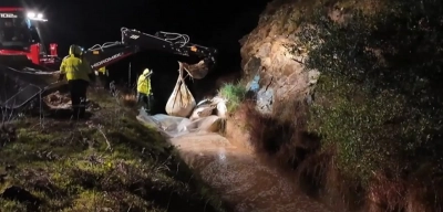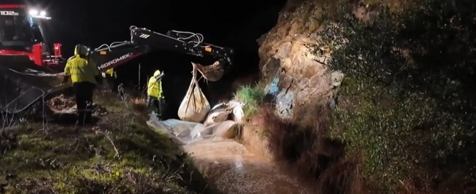 En el municipio, efectivos de la UME están realizando trabajos de achique, con el equipo medio de bombeo de aguas y lodos. En una publicación en redes sociales, han señalado que el agua de lluvia arrastra pirita y que los trabajos están tratando de evitar que desagüe en el embalse.