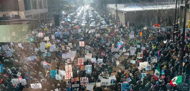 Ni siquiera el sábado por la noche, con el termómetro marcando los 20 grados bajo cero y más de 3.000 agentes federales patrullando las calles de Minneapolis, la ciudadanía de se quedó en su casa. Todo lo contrario: volvió a salir para protestar contra las atrocidades del ICE y el asesinato de Alex Pretti. Las manifestaciones por este nuevo asesinato a manos de agentes federales también se extendieron durante todo el fin de semana a ciudades como Chicago, Nueva York o San Francisco bajo el lema “Justice for Alex” (Justicia para Alex) y con decenas de pancartas en las que se pide la abolición del ICE, el Servicio de Inmigración y Control de Aduanas estadounidense. También durante el domingo se han produjeron decenas de convocatorias en diferentes rincones del país para honrar la memoria de Pretti y pedir que el ICE se retire de las calles.