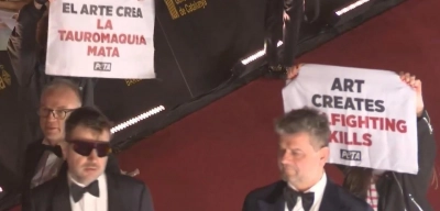 Activistas de la organización internacional de protección de los animales PETA han realizado una protesta en la alfombra roja de la Gala de los Premios Goya contra la película Tardes de soledad, de Albert Serra, que finalmente se ha alzado con el premio a Mejor película documental. "La tauromaquia no es arte", han argumentado desde la organización.