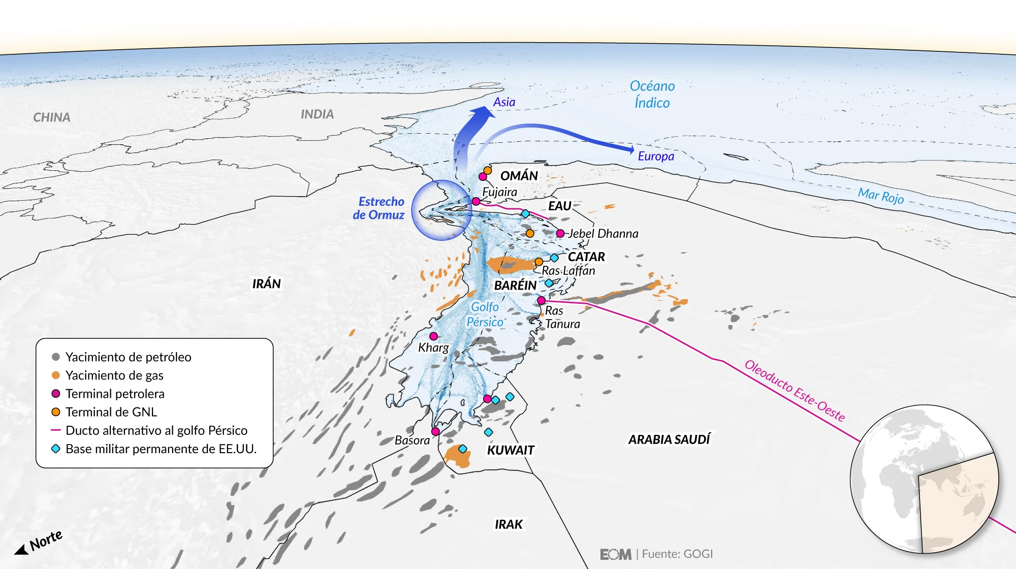 Por Ormuz circula el 20% del crudo mundial, que asciende al 30% de todo el que se comercializa por mar. Además, en el golfo Pérsico se encuentran dos tercios de las reservas mundiales probadas de petróleo y un tercio de las de gas. Aunque Irán nunca había cerrado completamente el estrecho, siempre ha empleado a Ormuz como palanca en las escaladas de tensión.