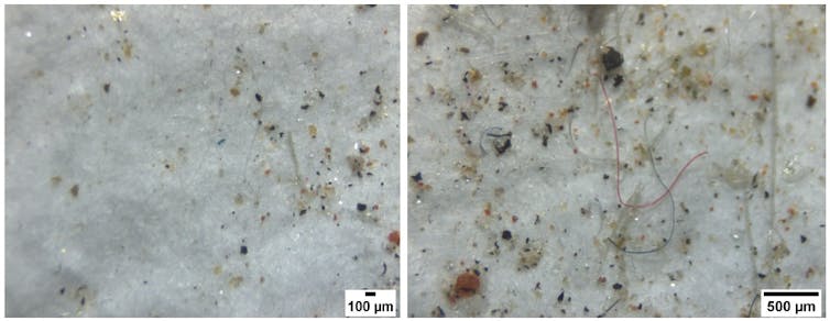 La mayoría de estos microplásticos (tres cuartas partes) fueron fibras, generalmente muy finas, con un diámetro de menos de 20 micras (la cuarta parte del grosor de un cabello humano) y compuestas en más de un 90 % por poliéster, un material ampliamente usado en la producción de fibras textiles. Además, se encontraron cantidades menores de fibras acrílicas y fragmentos de polipropileno o de poliuretano, entre otros.