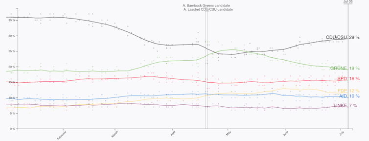 Por el todavía bajo carisma de Armin Laschet, el candidato del CDU/CSU, en comparación con Merkel.