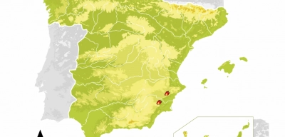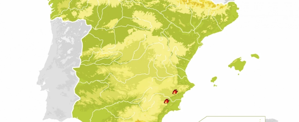 Mapa de los incendios forestales activos a 26 de enero de 2026 / Imagen: EA Los únicos dos fuegos de relativa actividad en España se encuentran concentrados en el cuadrante sureste de la Península, ambos próximos entre sí. Uno está ubicado en el oeste de la Región de Murcia, en las proximidades del municipio de Caravaca de la Cruz. El segundo incendio está situado en el suroeste de la Comunidad Valenciana, cerca del límite con la región murciana en una pedanía de la localidad alicantina de Monóvar.