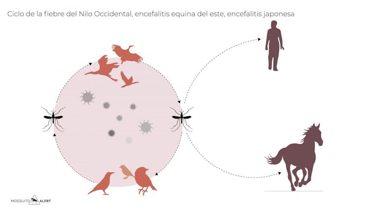 Las hembras de los insectos adquieren los virus al picar y alimentarse de la sangre de un vertebrado infectado. Luego, el virus se propaga y replica por algunos de los tejidos del mosquito, convirtiéndolo en un “almacén” del virus. Así, el vector puede transmitir el patógeno a un nuevo huésped vertebrado en su siguiente picadura.
