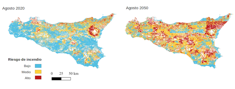 Los modelos de inteligencia artificial pronostican un aumento del 320 % en la probabilidad de incendios entre 2020 y 2050. Las zonas vulnerables, como la interfaz urbano-forestal y las áreas protegidas aumentarán el doble su probabilidad de incendio y servicios ecosistémicos como la polinización o la biodiversidad enfrentarán un mayor riesgo.