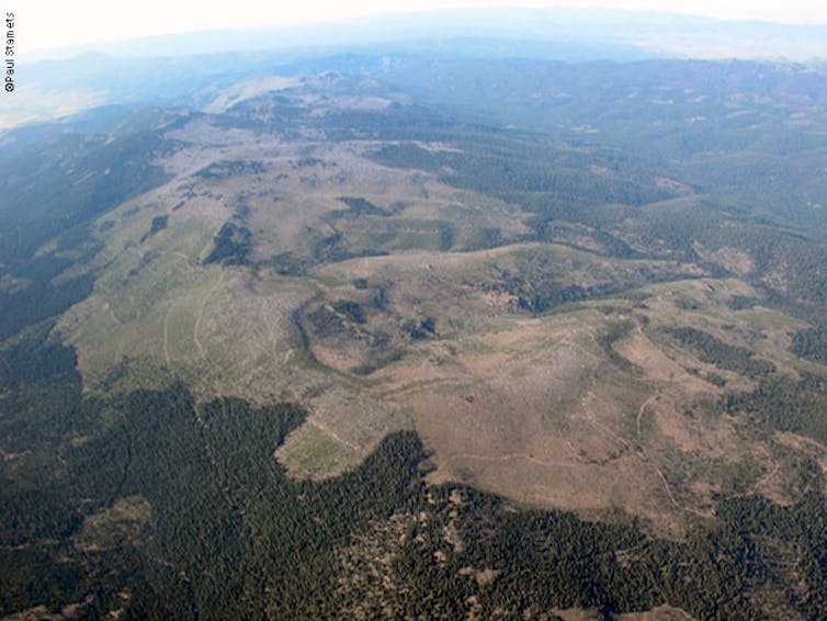 El micelio –estructura similar a la raíz– del hongo Armillaria ostoyae llega a cubrir una extensión de unos 9 km² en las Montañas Azules de Oregón.