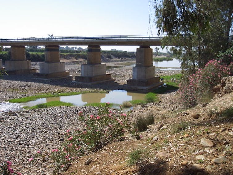 Un ejemplo es el puente de Tomás de Ibarra sobre el río Rivera de Huelva, en Guillena (Sevilla). La fuerte incisión en el río que genera la inestabilidad del puente estaría asociada a la irregularidad del régimen, la generación de ondas de crecida rápidas y el efecto de aguas limpias.