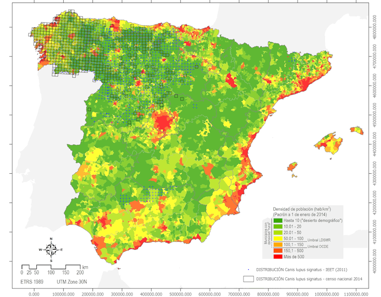 En los dos censos globales que se han efectuado en España, los de 1987 y 2014, el número de manadas (294 y 297) ha permanecido prácticamente estable. Esta estabilización poblacional es similar a la de Portugal, donde el número de manadas durante una década ha permanecido en torno a sesenta. Salvo en casos puntuales, hablar de “manadas” es un eufemismo: las manadas ibéricas tienen densidades extremadamente bajas, de apenas cuatro ejemplares.