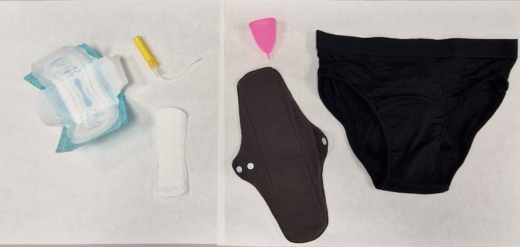 Actualmente, existen muchos tipos de productos menstruales en el mercado, tanto de un solo uso (compresas, tampones y salvaslips) como reutilizables (bragas menstruales, compresas reutilizables y bragas menstruales).