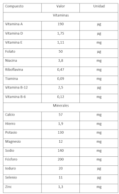 Este alimento presenta un alto contenido de vitaminas y minerales que son esenciales para su salud (Tabla 1). Su incorporación en una dieta balanceada es esencial para reducir el riesgo de muchas patologías y lograr una recuperación adecuada tras la enfermedad.